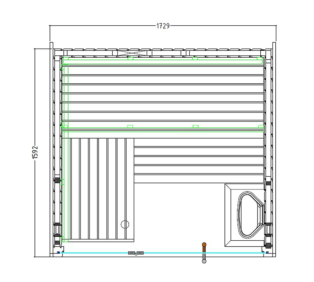 Bănci 62, 55, 41 cm Tetieră Grilaj de ventilație Spătare Mască intermediară bănci Grătar protecție sobă Grătar podea Abajur cu lampă - Grosime pereți 65 mm.